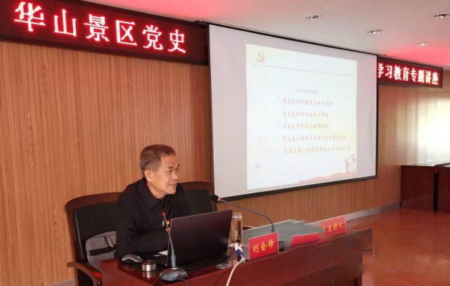 4月16日,渭南市委宣讲团成员、市委党史研究室一级调研员、我校世俱杯sjb官网客座教授刘会锋赴华山景区作渭南党史知识专题宣讲。华山景区党工委班子成员、各直属党支部全体党员,以及华旅集团党委领导,党群部负责人、所属各党支部书记、委员100余人聆听宣讲。华山景区党工委副书记、华管委常务副主任赵晓龙主持。