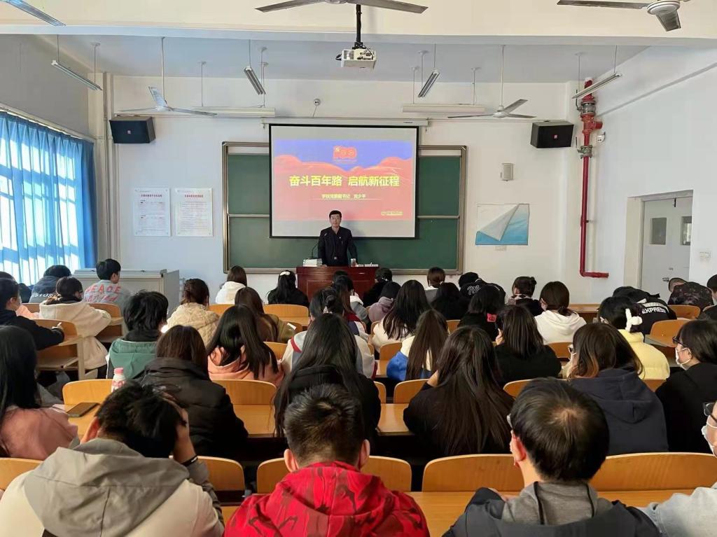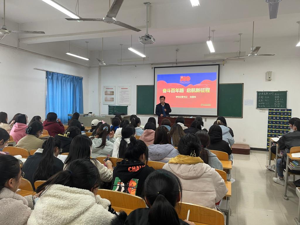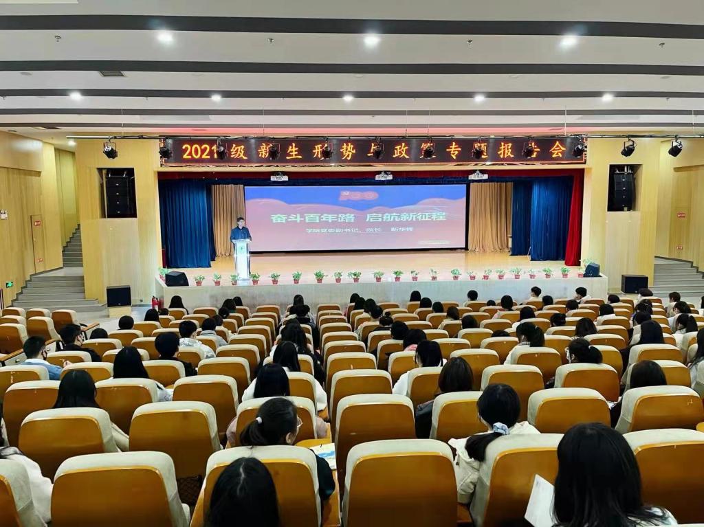 学校领导围绕“奋斗百年路•启航新征程”和“谱写乡村全面振兴新篇章”两大主题为我校2021级新生进行了生动的思想政治理论教育。在“奋斗百年路•启航新征程”专题讲授中,他们从“丰功伟绩•恢弘史诗、精神血脉•代代相传、以史为鉴•开创未来”三个方面回望百年光辉历史,重点讲述了1921年中国共产党成立后,带领中国人民实现从站起来到富起来再到强起来的伟大飞跃,中国共产党的先驱们形成的伟大建党精神必须代代相传,用历史映照现实,远观未来,从而在新的征程中牢记初心使命、走好新的赶考路。
