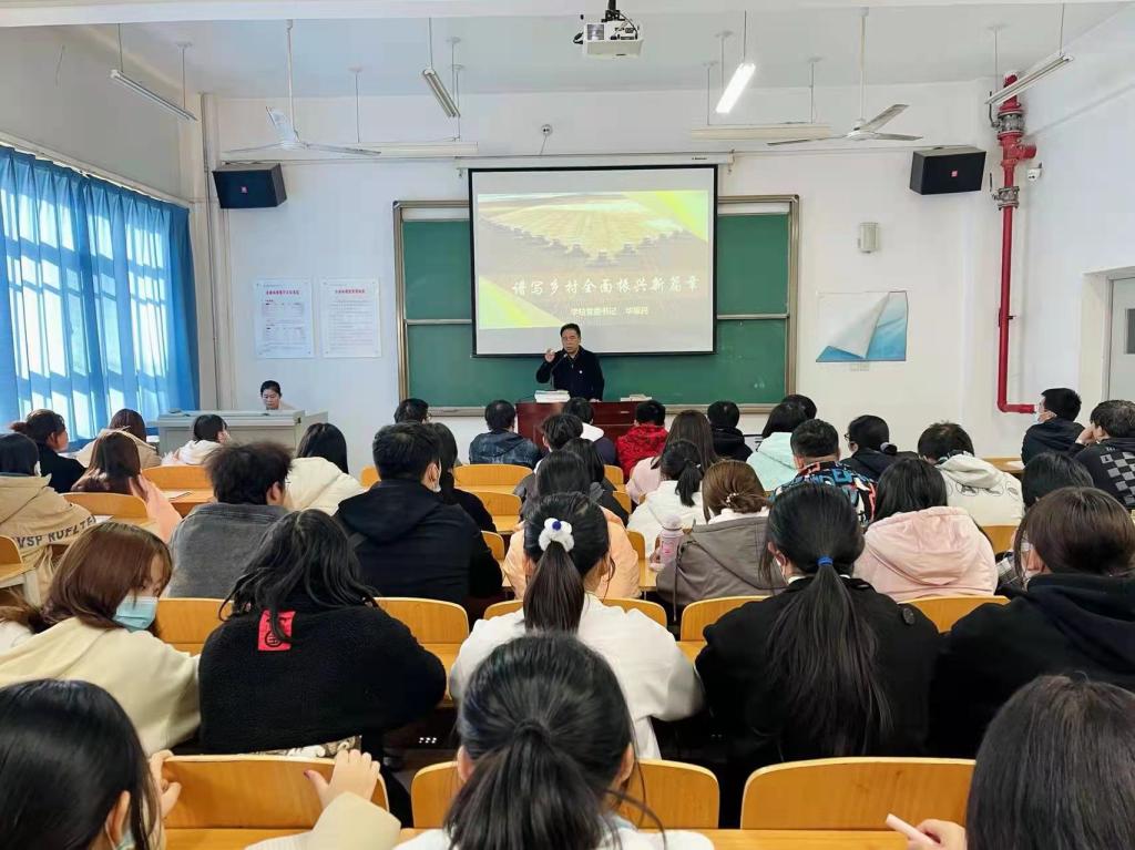 在“谱写乡村全面振兴新篇章”专题讲授中,他们结合我校大多数学生来自农村的实际情况,从“农业农村展新颜、把握重点续新篇、抓住重点开新局”三个方面讲述了农业农村工作发展的历史性成就、历史性变革。让学生们深刻认识到脱贫攻坚取得胜利后,“三农”工作重心发生历史性转移,要举全党全社会之力推动乡村振兴。运用详实的数据和身边的案例,讲述了全面推进乡村振兴的重要举措,帮助学生用大历史观看待农业、农村、农民问题,深刻认识“三农”在全面建设社会主义现代化国家中的重要性。