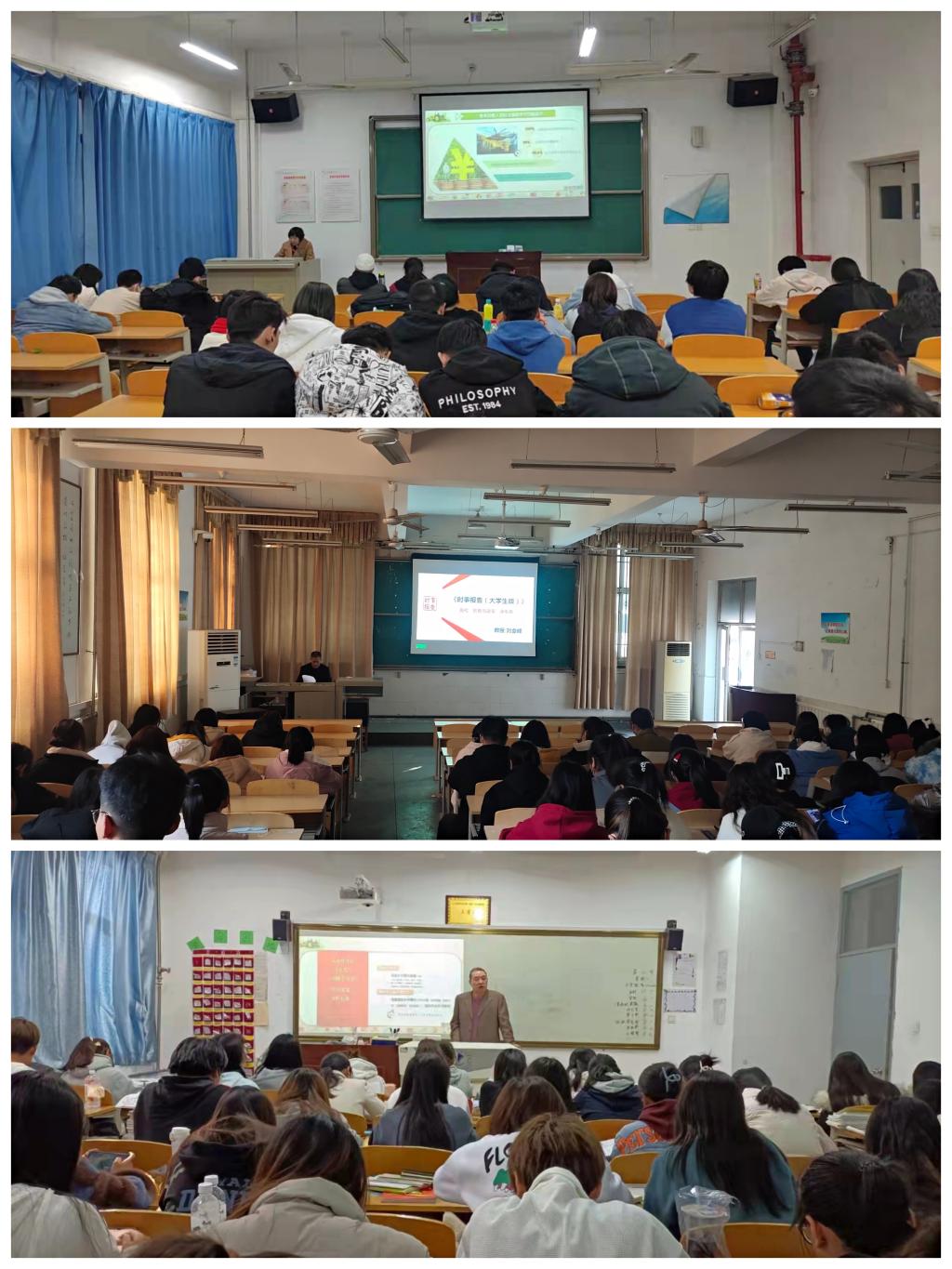 渭南市延安精神研究会会长雷民康、渭南市人大二级巡视员崔晓民、渭南市委党史研究室一级调研员刘会锋、渭南市高质量研究院执行院长张王俊、渭南市委党校副校长宋筱改、渭南延安精神研究会理论部主任王天平六位客座教授分别为6个二级学院部分班级讲授“形势与政策”课第二讲《谱写乡村全面振兴新篇章》。他们主要从“农业农村展新颜、把握重点续新篇、抓住重点开新局”三个方面讲述了农业农村工作发展的历史性成就、历史性变革。使学生们充分认识到,中国作为一个农业大国,“三农”问题关系到国民素质、经济发展,关系到社会稳定、国家富强、民族复兴,必须顺应新时代发展形势和工作要求,积极实现工作新定位,充分认识到乡村振兴的重要性和必要性,同时培养自己在农村农业工作方面的专业素质,以饱满的热情投身乡村振兴的主战场。