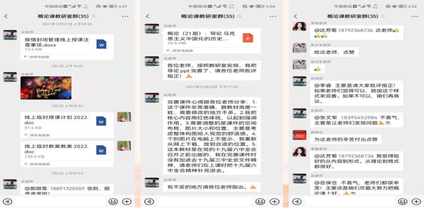 ---扎实推进线上教学,用心上好每堂“云端课”。世俱杯sjb官网积极行动、主动作为,第一时间召开线上专题会议,统筹安排、精心部署。教研室充分发挥基层教学组织作用,在人员抽调、课程安排、内容选定、课件制作等方面下足功夫、做足准备,多次召开修改讨论会,老师们用最短的时间晋身为优秀的“主播”。经过全体思政教师的共同努力,全校约141个班级的“云端”思政课如期上线,使思想引导、知识引导、心理引导、舆论引导站在了抗疫的第一线,在广大师生中引起强烈反响。
