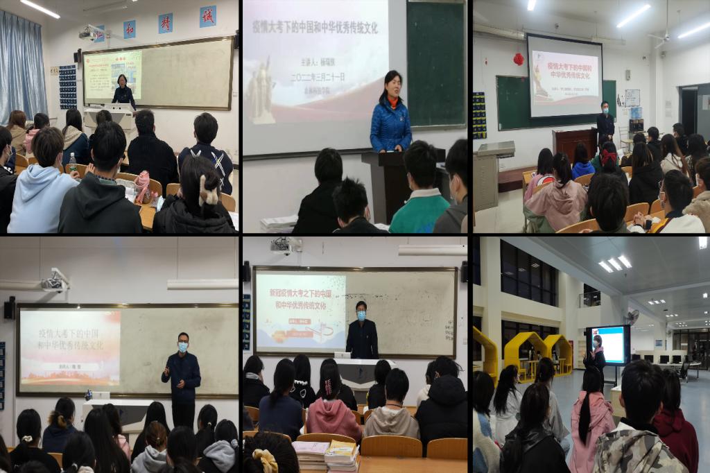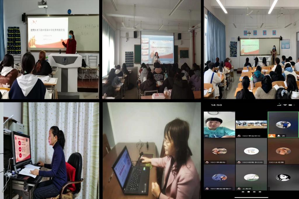 从3月16日晚到3月22日晚,学校8名领导班子成员深入7个二级学院,利用晚自习时间以主题班会的形式,围绕“疫情大考下的中国和中华优秀传统文化”这一主题与青年学生探讨交流,共上16堂思政大课。7个二级学院25名党政负责人及18名职能部门负责人,深入班级共上35堂思政大课。51名专兼职思政教师在《毛泽东思想和中国特色社会主义理论体系概论》《心理健康与职业生涯》等课程中融入疫情防控知识及思政育人元素,为全校123个教学班共上123节思政大课。440余名专业课教师结合专业特点,利用课前5分钟时间,以“四讲、三问、两增强”为内容加强课程思政教育工作,强化社会主义核心价值观教育。这堂深刻的“抗疫”思政大课全校13000余名学生参加,参与率100%,实现全员参与、全域覆盖和全方位推进。