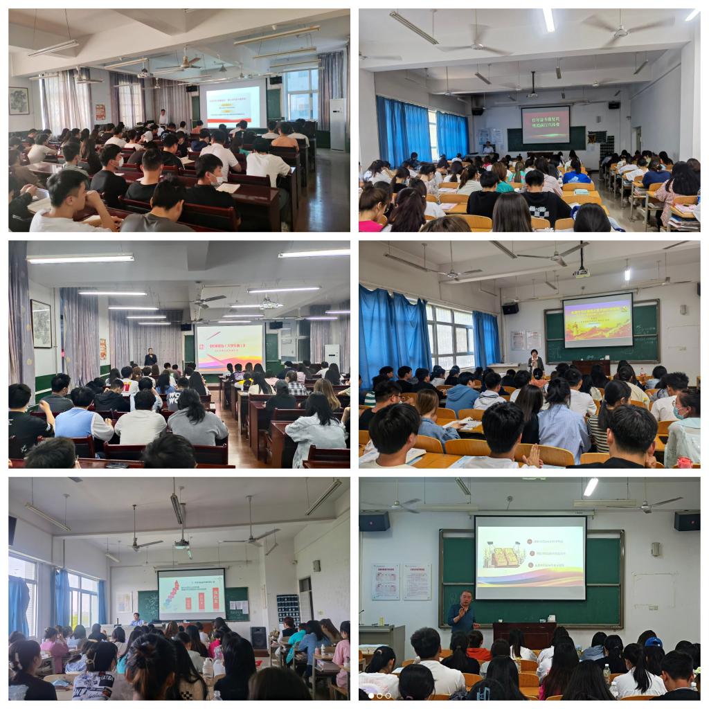 5月9日至31日,渭南市延安精神研究会会长雷民康、渭南市人大二级巡视员崔晓民、渭南市委党史研究室一级调研员刘会锋、渭南市委党校副校长宋筱改、渭南师范学院世俱杯sjb官网副院长马忠智、渭南延安精神研究会理论部主任王天平六位客座教授分别为6个二级学院部分班级讲授形势与政策课第一讲《百年奋斗谋复兴 勇毅前行兴伟业》和第二讲《不断推进全体人民共同富裕》。各位客座教授课前认真备课,课中通过多提问题,集中学生的注意力,引导学生勤于思考,结合学生的专业实际、学习实际、生活实际、就业实际和社会实际因材施教,讲授中结合学情注重知识结构、逻辑关系,通过旁征博引把各种知识点串起来,启发学生的想象力和对思政课的兴趣。课堂氛围热烈,学生反响较好。