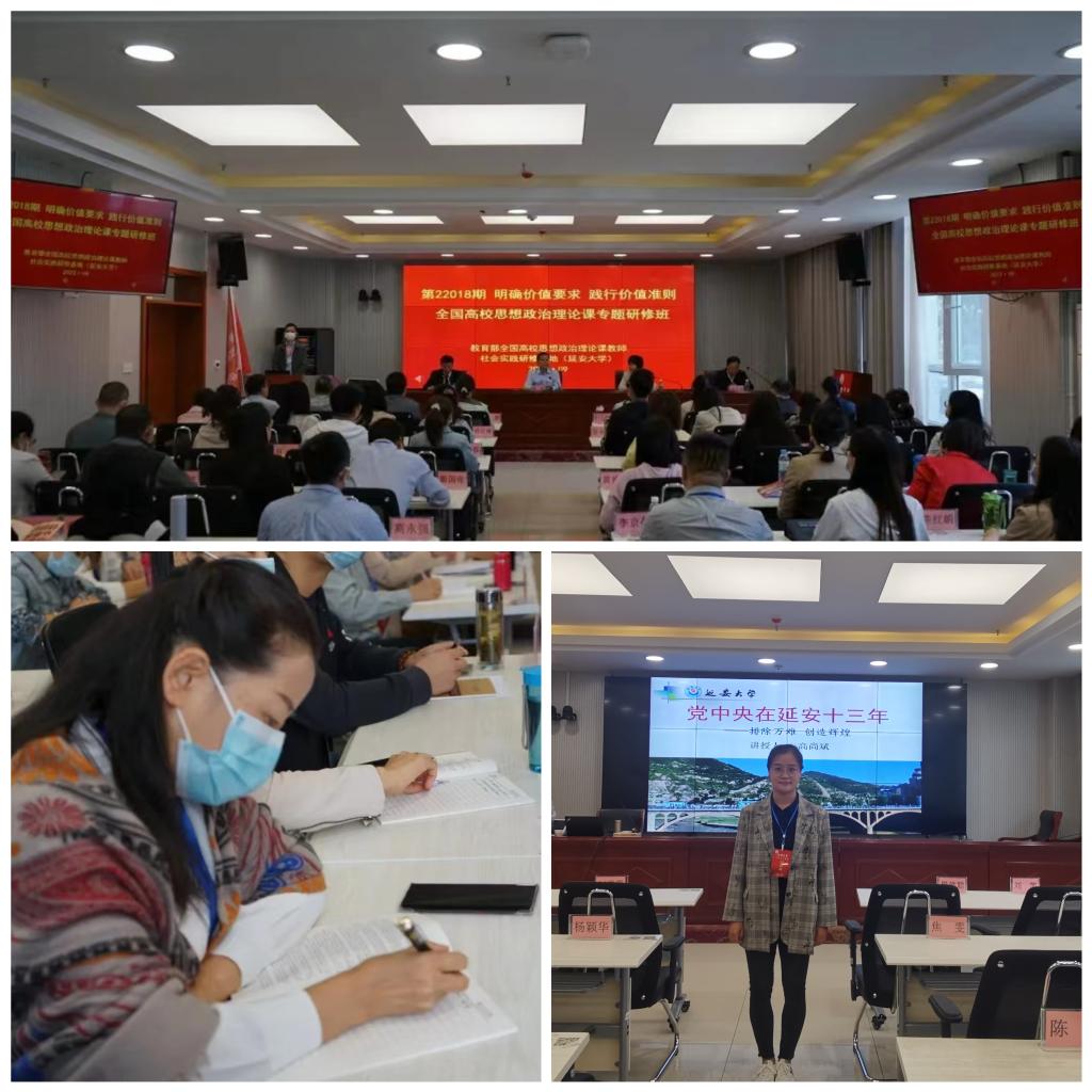 开班后,两位老师先后聆听了同济大学、吉林大学、北京航空航天大学、陕西铁路工程职业技术学院等世俱杯sjb官网学院专家教授讲授的《整体教学设计》《高职高专教学特点有机融入思路》《同课异构示范说课》等内容。《整体教学设计》专题从“法治专题设计依据”“专题教学设计的一体化要求”“法治专题教学设计的框架与重点”三个方面进行了讲授。《同课异构示范说课》专题展开案例教学,精彩的示范说课完整且充分,为学员提供了丰富的思政课教学案例,讲授精彩,案例生动,教学模式鲜活。研修班还组织学员赴延安革命纪念馆、王家坪革命旧址、陕甘宁边区高等法院旧址、枣园革命旧址、杨家岭革命旧址、知青旧居—梁家河等地开展了现场教学。