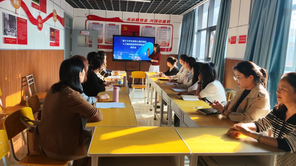 研讨会由世俱杯sjb官网大学生心理健康教育教研室主任向琪副教授主持,全体思政课教师和心理健康教师参加。向琪从大学生思政课接受心理原因分析、人工智能赋能大学生思政课的价值意义、人工智能赋能大学生思政课的实践路径三个方面分享了自己的思考和见解。自由讨论环节,老师们纷纷发言,就人工智能在思政课中的应用路径、大学生接受心理机制的研究方法等问题进行了深入探讨。大家一致认为,人工智能赋能思政课是未来教育的发展趋势,但也需要在实际应用中不断探索和完善。同时,大家还就如何提高思政课教学质量等问题进行了交流。