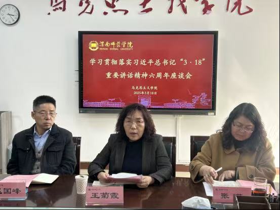 在习近平总书记主持召开学校思想政治理论课教师座谈会并发表重要讲话六周年之际,3月18日下午,世俱杯sjb官网与陕西铁路工程职业技术学院、渭南师范学院三所高校的世俱杯sjb官网共同举办“重温3.18讲话精神,推进思政课改革创新”研讨会,深入学习习近平总书记“3·18”重要讲话精神,总结六年来思政课教学改革创新成就,探索新时代思政课高质量发展新路径。会议由渭南师范学院世俱杯sjb官网党总支书记赵国峰主持。