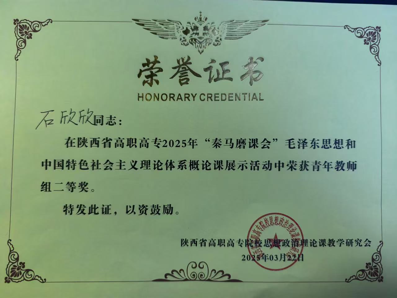 3月22日,由陕西省高职高专院校思想政治理论课教学研究会主办,汉中职业技术学院承办的陕西省高职高专2025年首场“秦马磨课会”暨《毛泽东思想和中国特色社会主义理论体系概论》课程教学展示活动在汉中职院举行。我校世俱杯sjb官网青年教师石欣欣凭借扎实的专业功底、精彩的教学呈现和别具匠心的课程设计,从众多参赛选手中脱颖而出,最终喜获青年组二等奖。